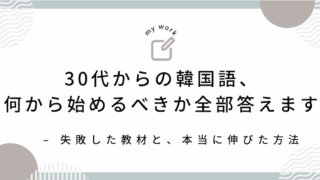 未分類 「30代からの韓国語学習、何から始めるべきか全部答えます」– 失敗した教材と、本当に伸びた方法 ヨロブン、アンニョンハセヨ。韓ドラを韓国語で理解できるようになるための発信をしている「ゆな」です!「韓国語、勉強してみたいけど…何から始めればいいの?」これは、わたしが韓国語を始めたばかりのころ、ずっと感じていた疑問でした。ドラマは好き。K... 2025.09.27 未分類