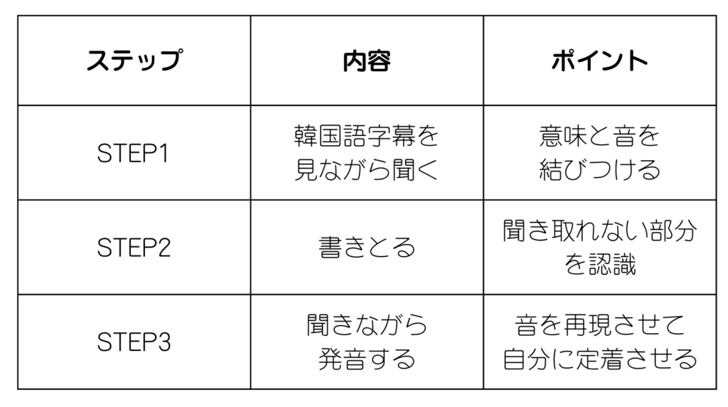 いわゆる“連音化”や“鼻音化”など、文字で見た韓国語と、実際の音が違うことが、初心者のリスニングを邪魔します